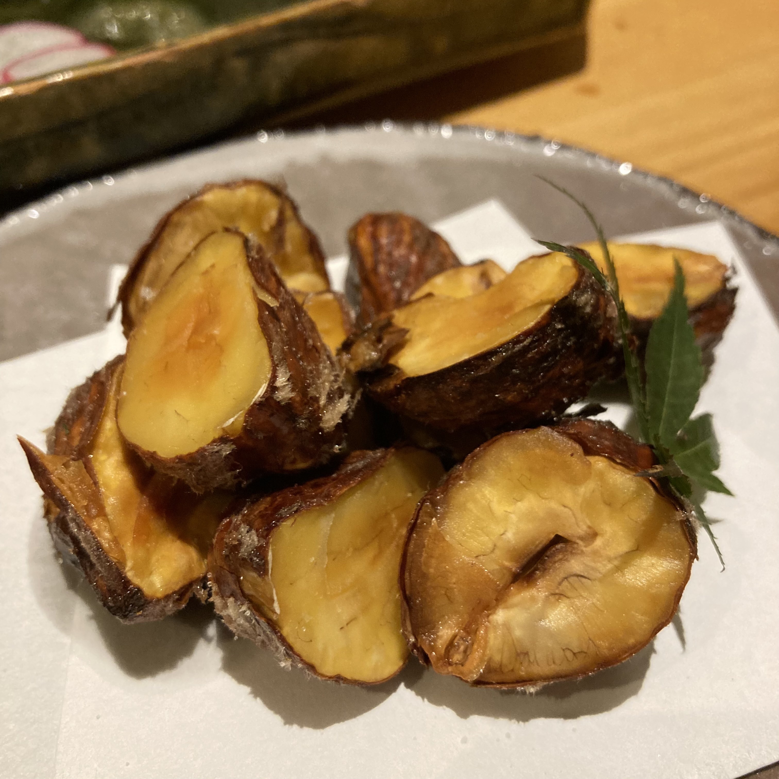 季節ものでは栗の素揚げをいただきました。もぅほっくほく。